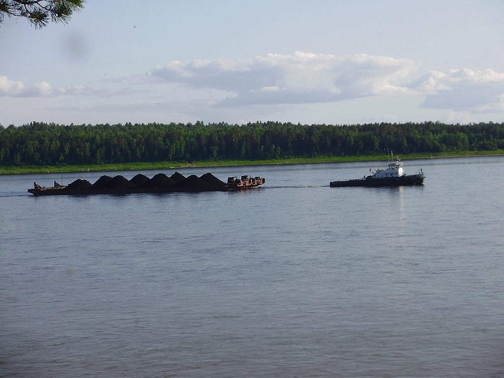 Просыпаемся около восьми от шума теплохода. Тащит 2 баржи